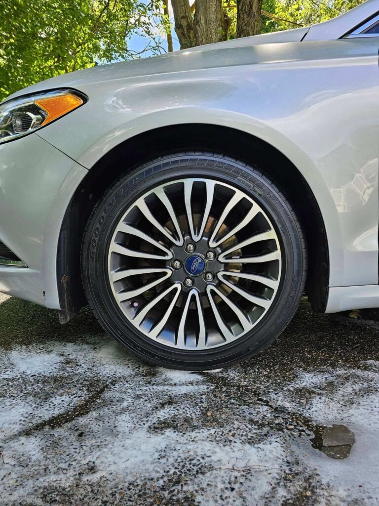 Deep clean rims, tires, and wheel wells